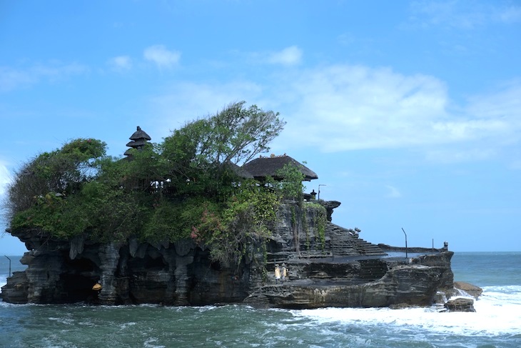 我们只能从远处观赏 Tanah Lot, 矗立在被海水遮盖住的石基石上。